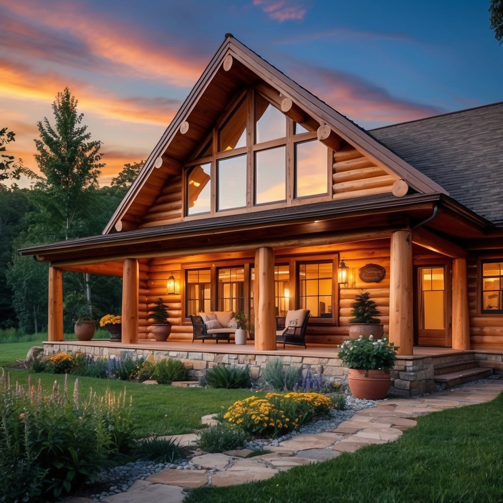 • Install exterior lighting that highlights the log cabin’s architecture and enhances safety. Choose fixtures that blend with the rustic style, such as lanterns or sconces.